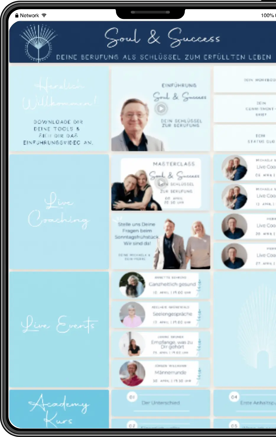 Erlebe Live-Coachings, Masterclasses und virtuelle Sonntagsfrühstücke.