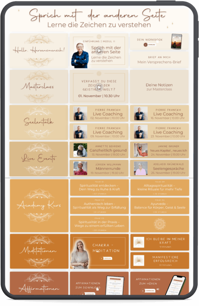 Deep Dives, Übungen & Live-Workshops, die Deine spirituelle Reise vertiefen.